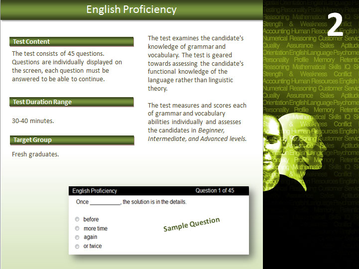 The Psychometric category consists of two standard tests used to measure individuals’ behavioral style, mental and intellectual capabilities to identify the personality traits of job seekers and employees which are usually difficult for employers to identify during interviews.