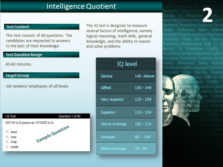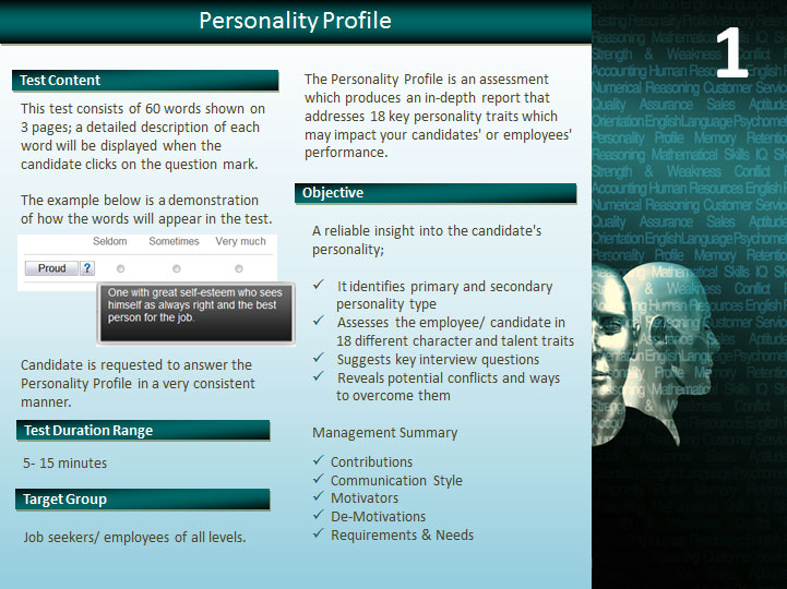 The Psychometric category consists of two standard tests used to measure individuals’ behavioral style, mental and intellectual capabilities to identify the personality traits of job seekers and employees which are usually difficult for employers to identify during interviews.