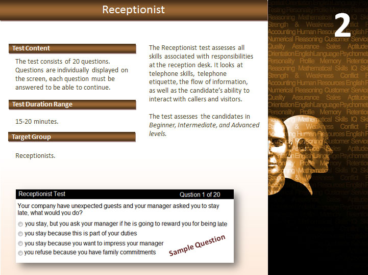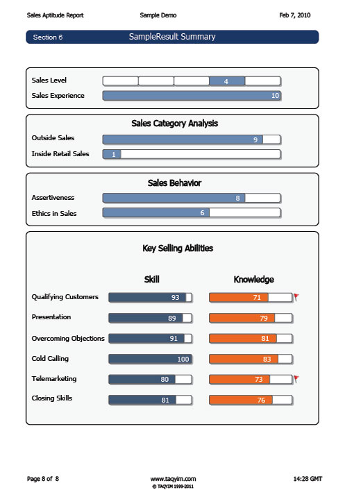 To build and maintain a strong business reputation, the Sales & Clients Relations category provides a comprehensive battery of tests to accurately measure fundamental areas of employees/candidates’ skill and knowledge when selling and communicating with clients to ensure quality performance. The consequences of hiring sales staff, customer service representatives and call center agents who exhibit poor performance will result in loos of your company a because as we know client relations are the deciding factor between a successful business and one that is not.